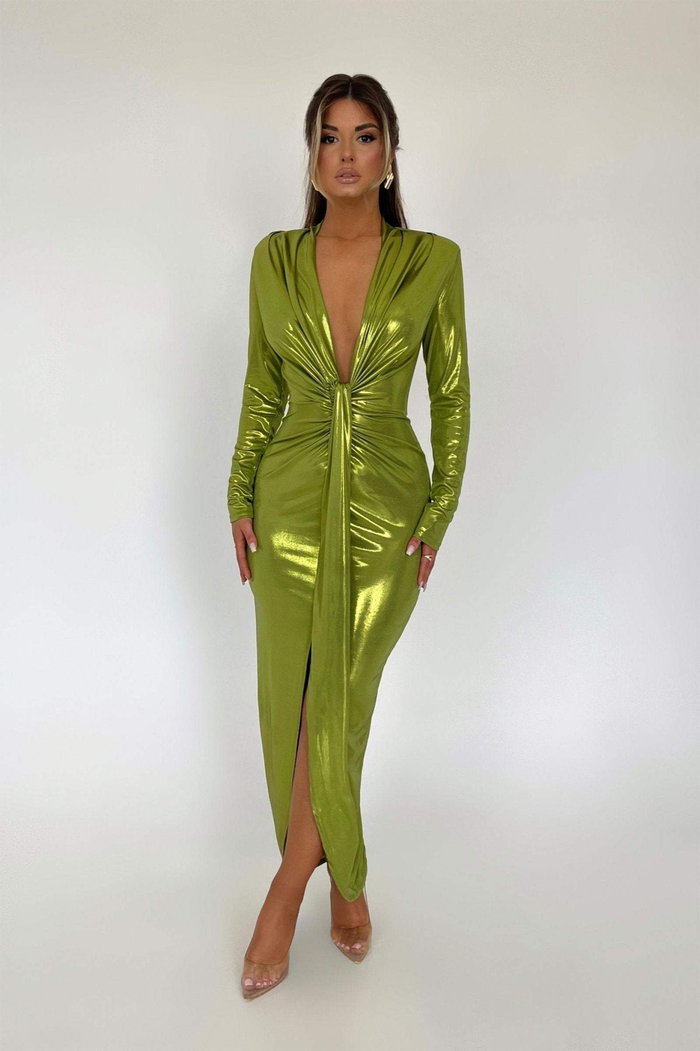 Be the first to review “Ailiyah Metallic V-neck Slit Midi Dress”