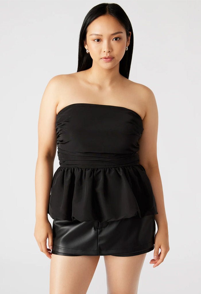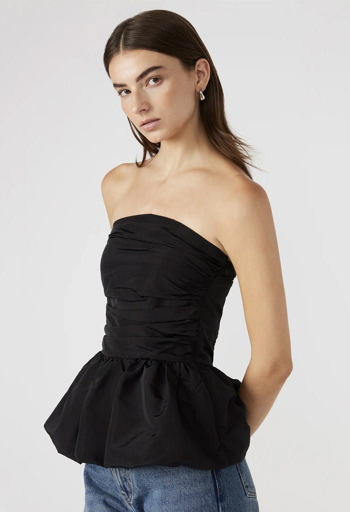 Elevate your style with our Amari Top. This top features a strapless design and bubble-hem taffeta design. it is both chic and comfortable. Perfect for any occasion. it will add a touch of sophistication to your wardrobe.