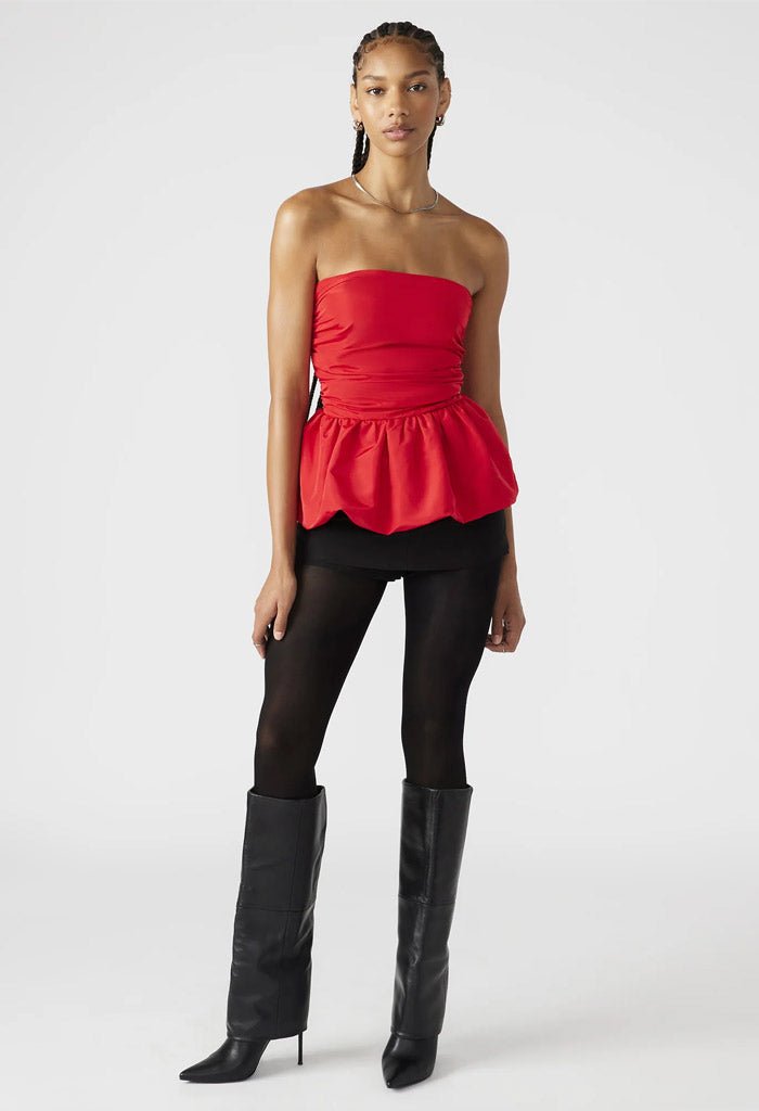 Elevate your style with our Amari Top. This top features a strapless design and bubble-hem taffeta design. it is both chic and comfortable. Perfect for any occasion. it will add a touch of sophistication to your wardrobe.