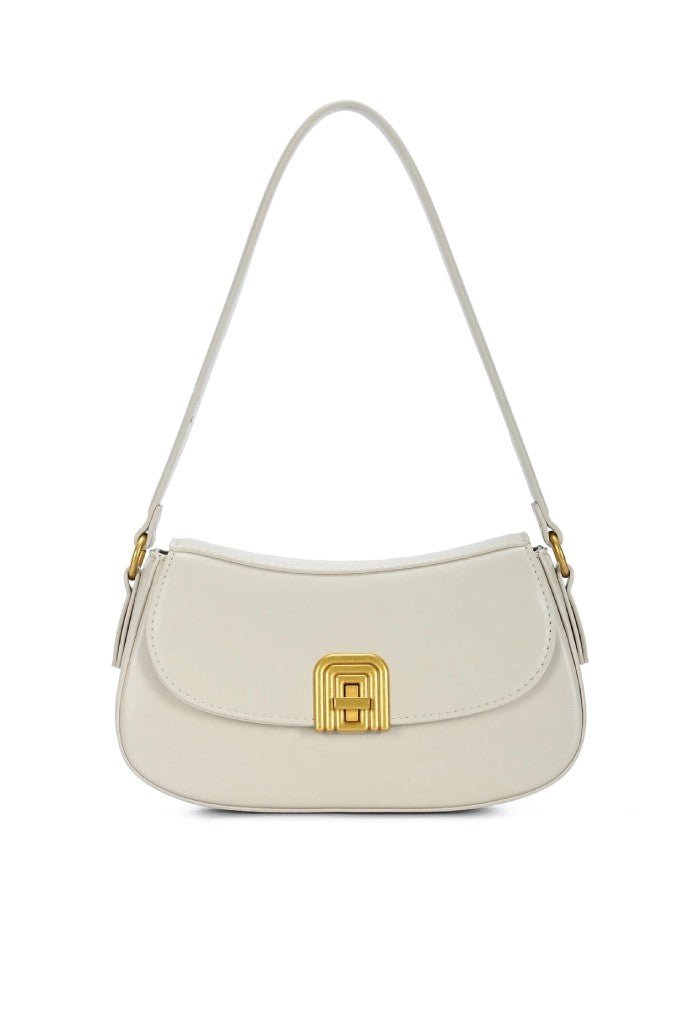 Introducing the Arch Buckle Twist Lock Bag. a chic accessory for any fashion-forward individual. Crafted with an eye-catching arch buckle twist lock. this bag adds a touch of sophistication to any outfit. Elevate your style with this must-have accessory.