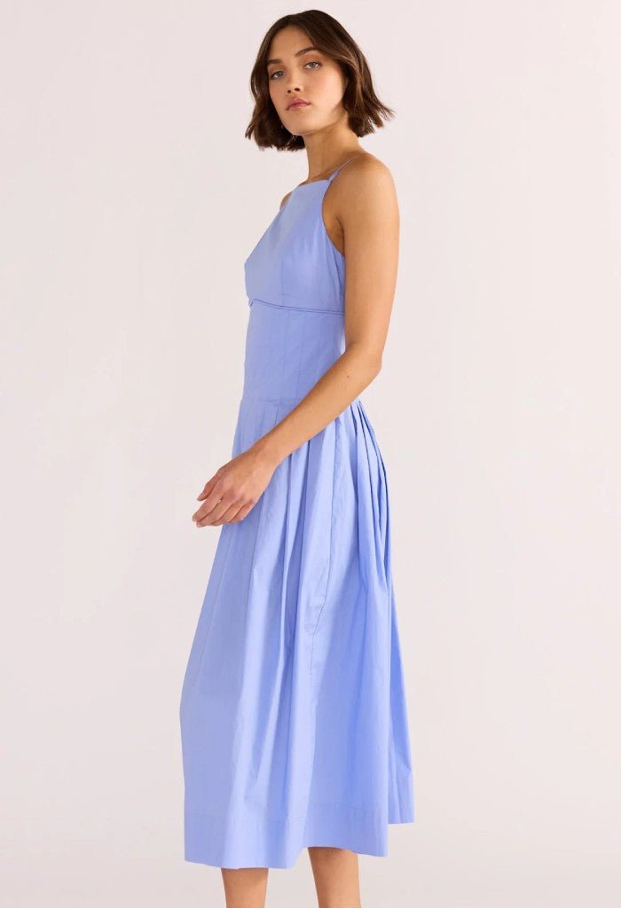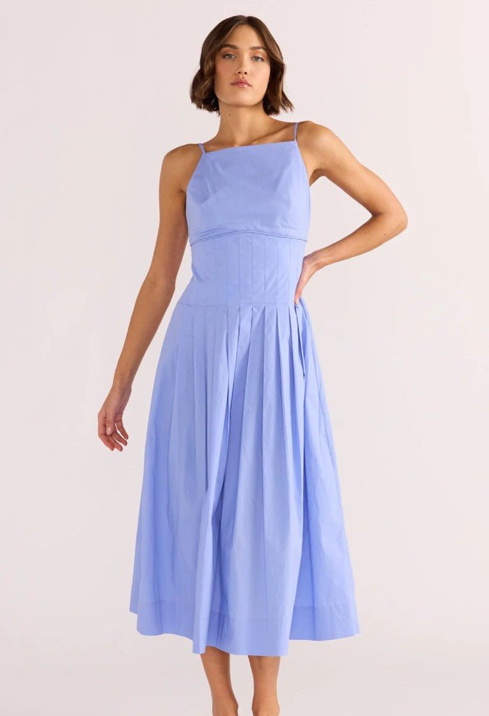 The Avalon Square Neck Midi Dress by MINKPINK is the perfect garment for trans seasonal dressing. Featuring a statement jacaranda blue wash. and a lightweight fabrication. Pair yours with a chunky slide. or a neutral mule to complete the look.