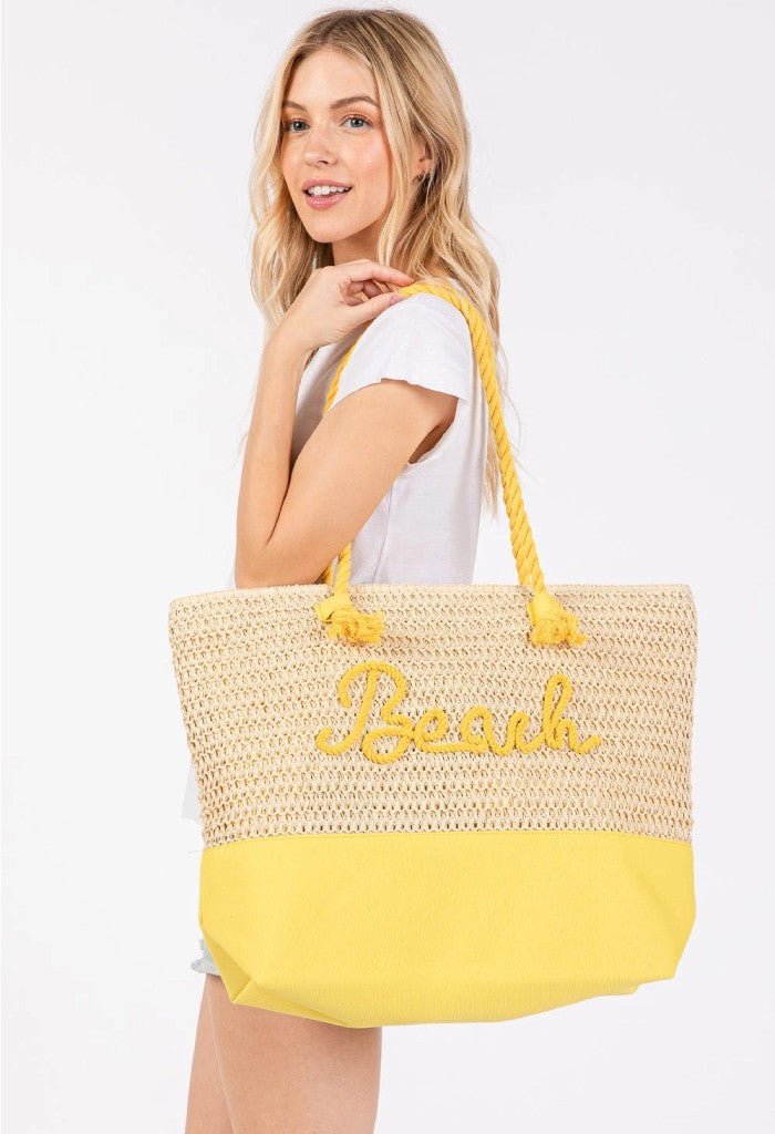 Get ready for some fun in the sun with the Beach Please Tote! This beach bag is perfect for holding all your beach essentials. from sunscreen to snacks. With its colorful letter design and sturdy rope handles. you’ll be the most stylish beachgoer around.