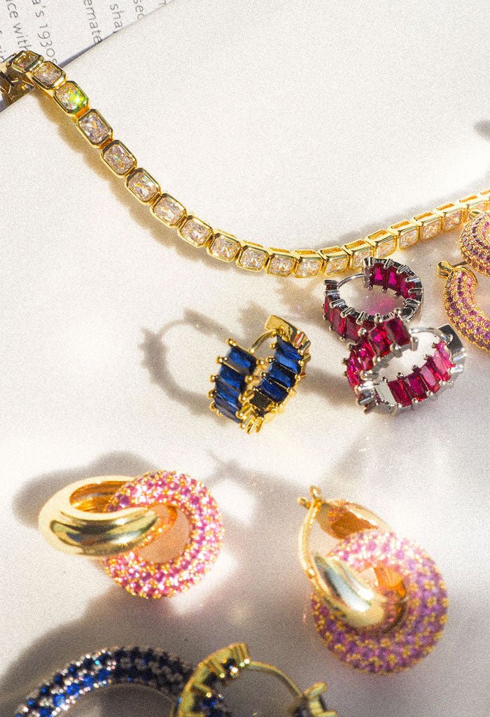 Bezel set. emerald cut ballier bracelet with CZ stones.