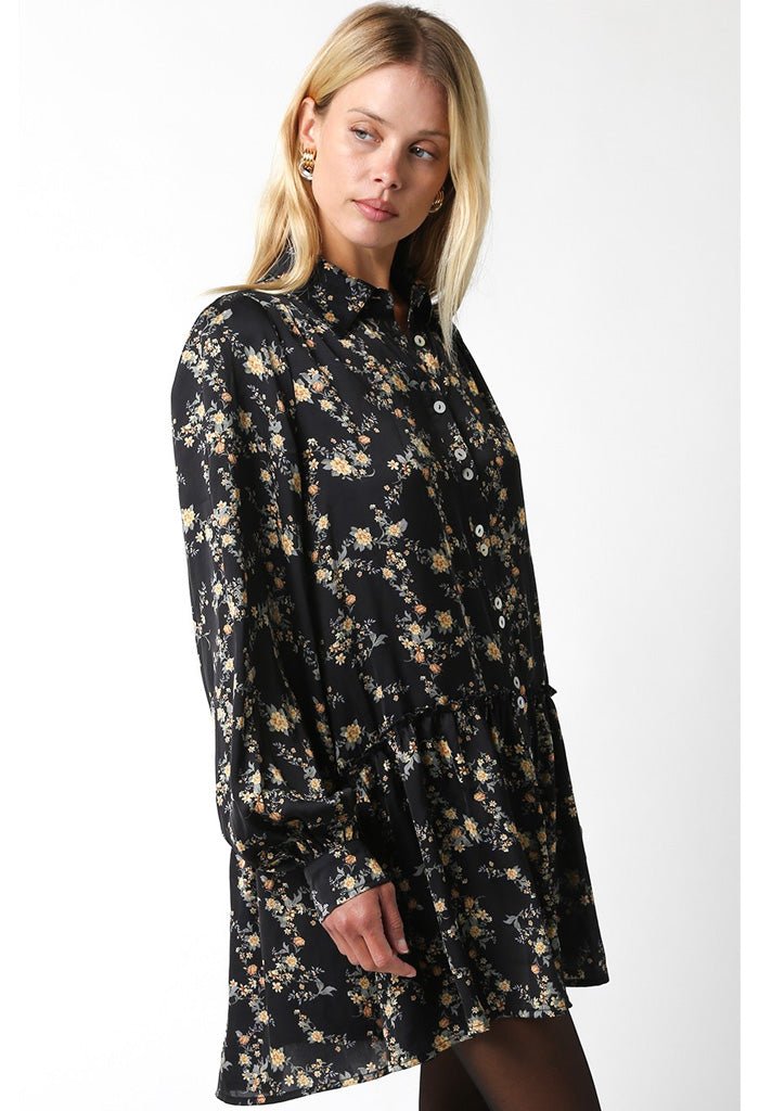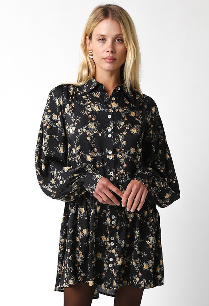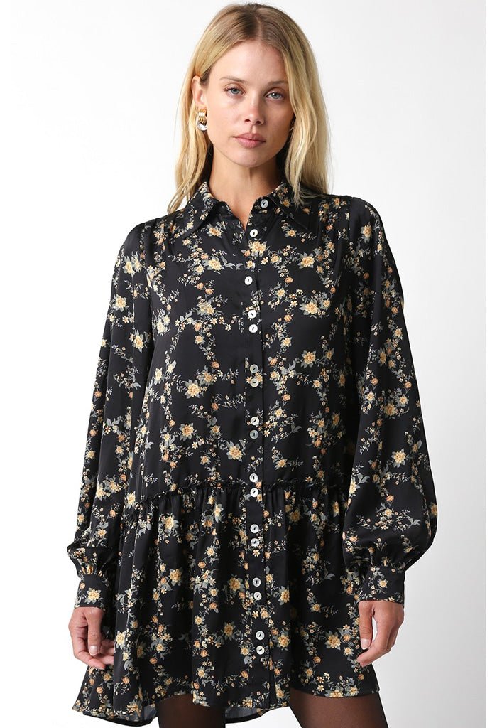 Refresh your fall wardrobe with this adorable shirt dress. Short and sweet. this mini dress features a fun floral print with a classic collared neckline and front button-closure. Slip it on with tights and ballet flats or a cute hat and tall boots!