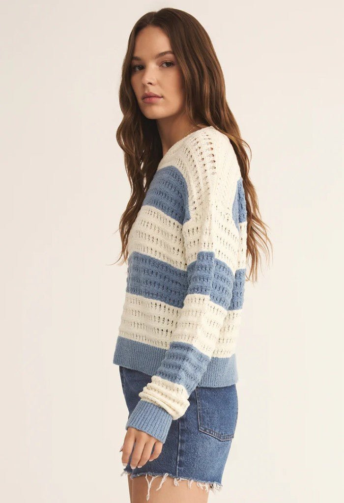 Stripes. texture. and a laid-back feel. this relaxed crewneck sweater checks all the boxes. Made from lightweight flax sweater knit with a yarn-dyed rugby stripe. it’s an easy go-to for everything from coffee runs to beach days.