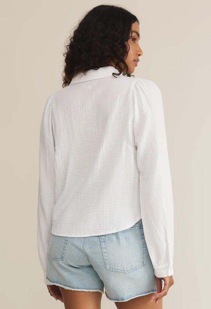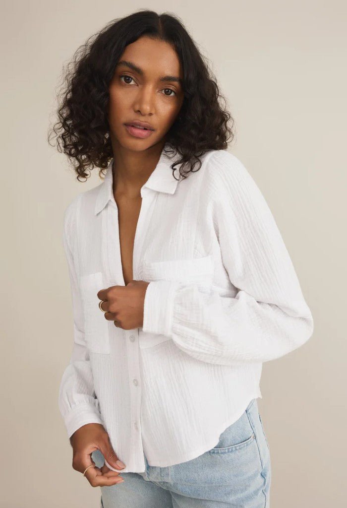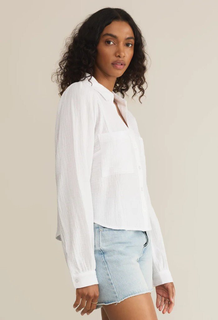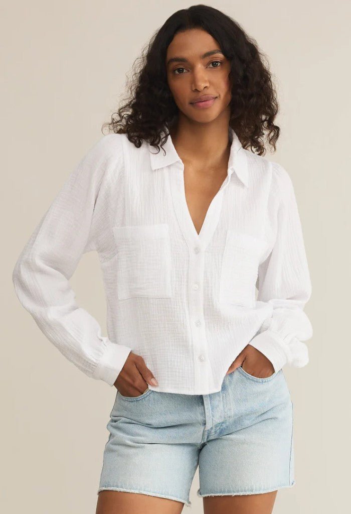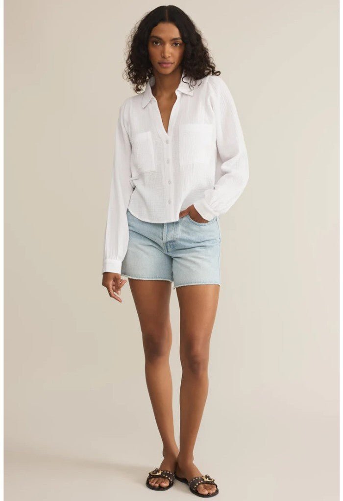 This cropped collared button-up top is crafted from lightweight double gauze fabric for an effortlessly relaxed fit. Finished with chest pockets and an airy feel. it’s a summer staple with a playful twist.