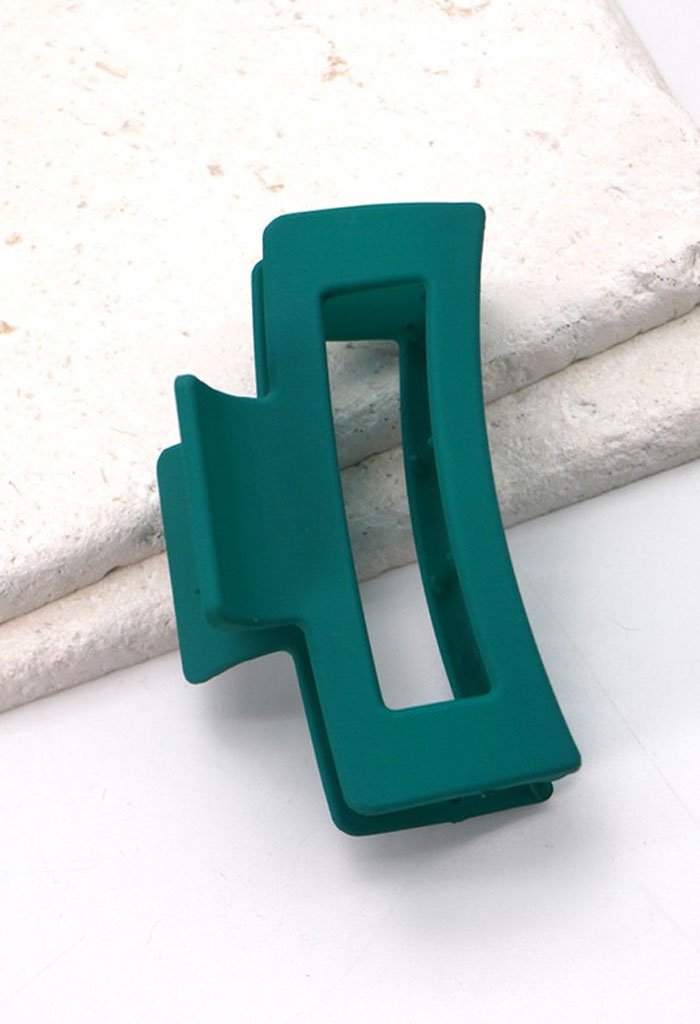 A matte hair claw with non-slip jumbo claws that hold hair tightly for an easy styling.