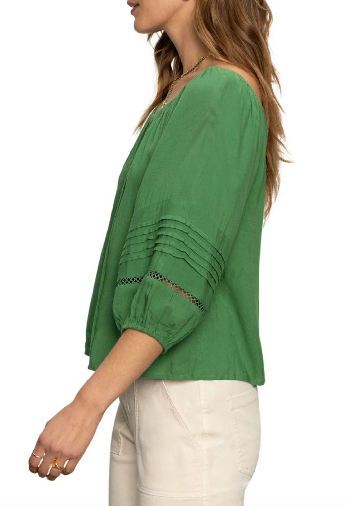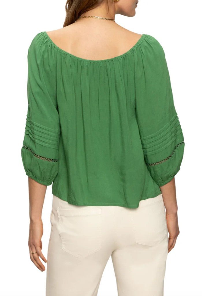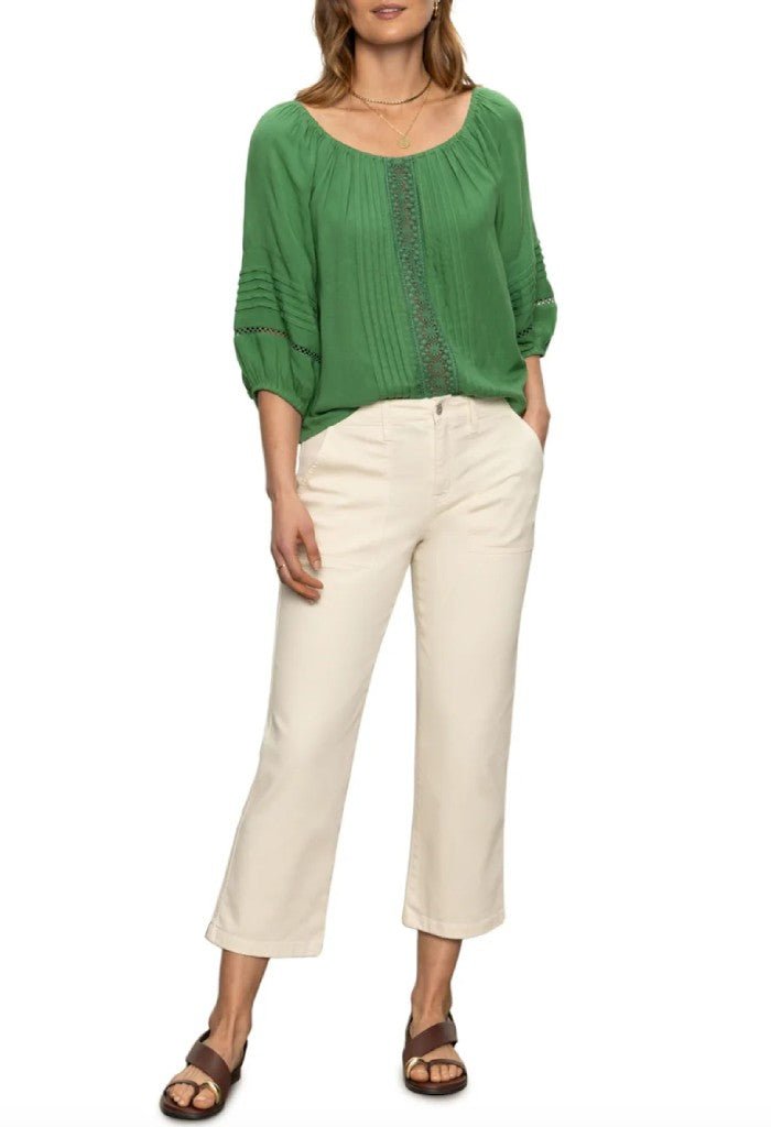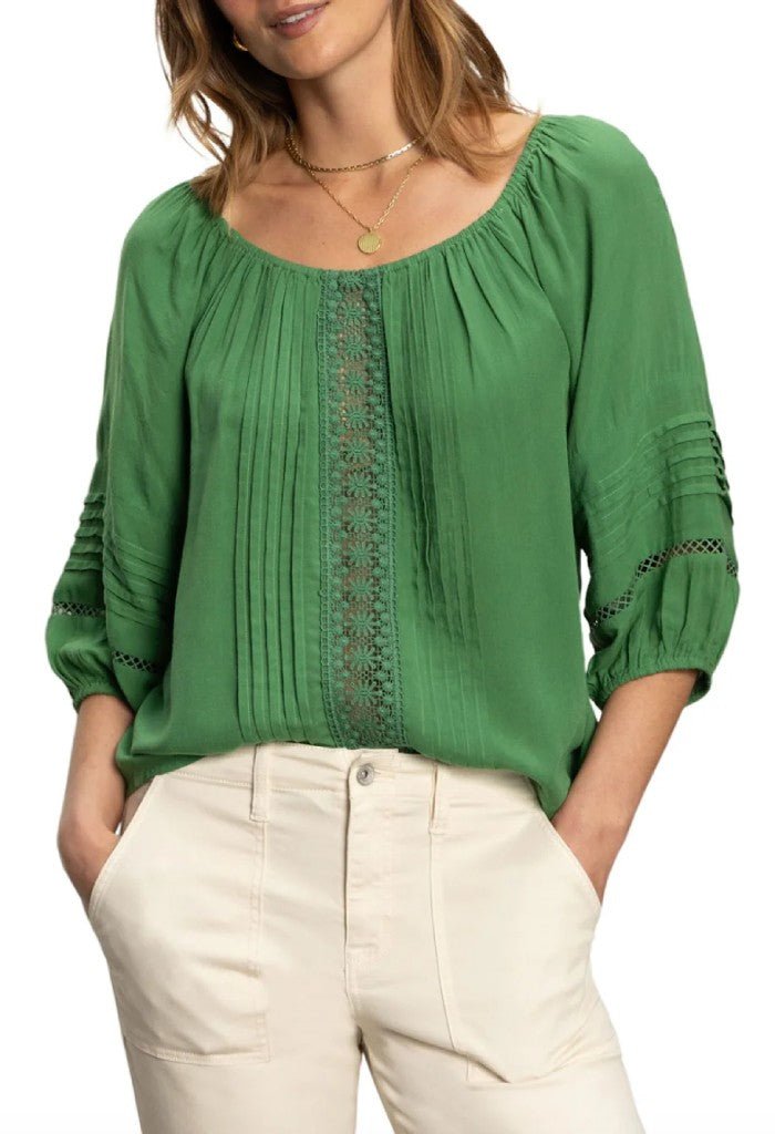 Keep cool in the Crafted Beach to Bar Top. An elasticized scoop neckline. half sleeves. and stylish crochet trim gives the perfect balance of cute and comfy. Slip on with chic white pants or denim shorts.