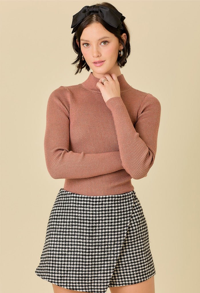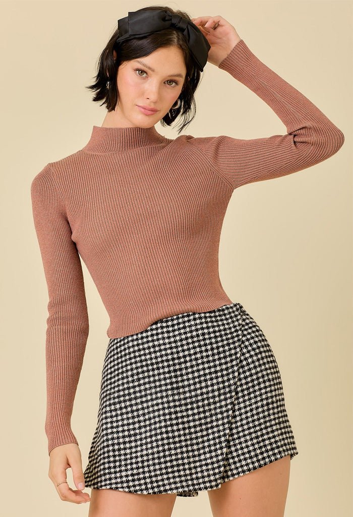 • Add a bit of shimmer to your look in the Dana Knit Top! Effortlessly chic. this stylish top features a cool mock neck with metallic detail. Tuck it into a cute skirt with your favorite boots or pair with comfy jeans and chunky kicks while on the go!