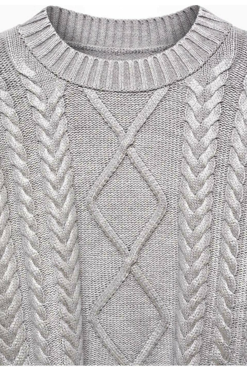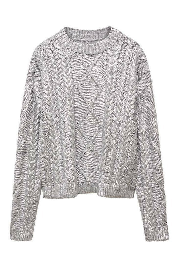- Long-sleeve, Round neck, Metallic Foiled Textured, Cable Knit.