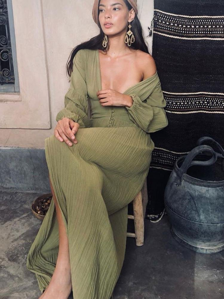 Be the first to review “Giselle V-neck Plisse Maxi Milkmaid Dress” Cancel reply