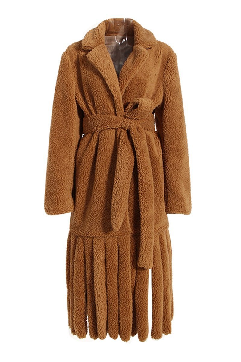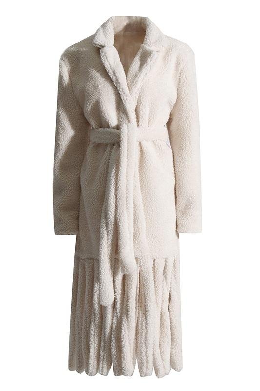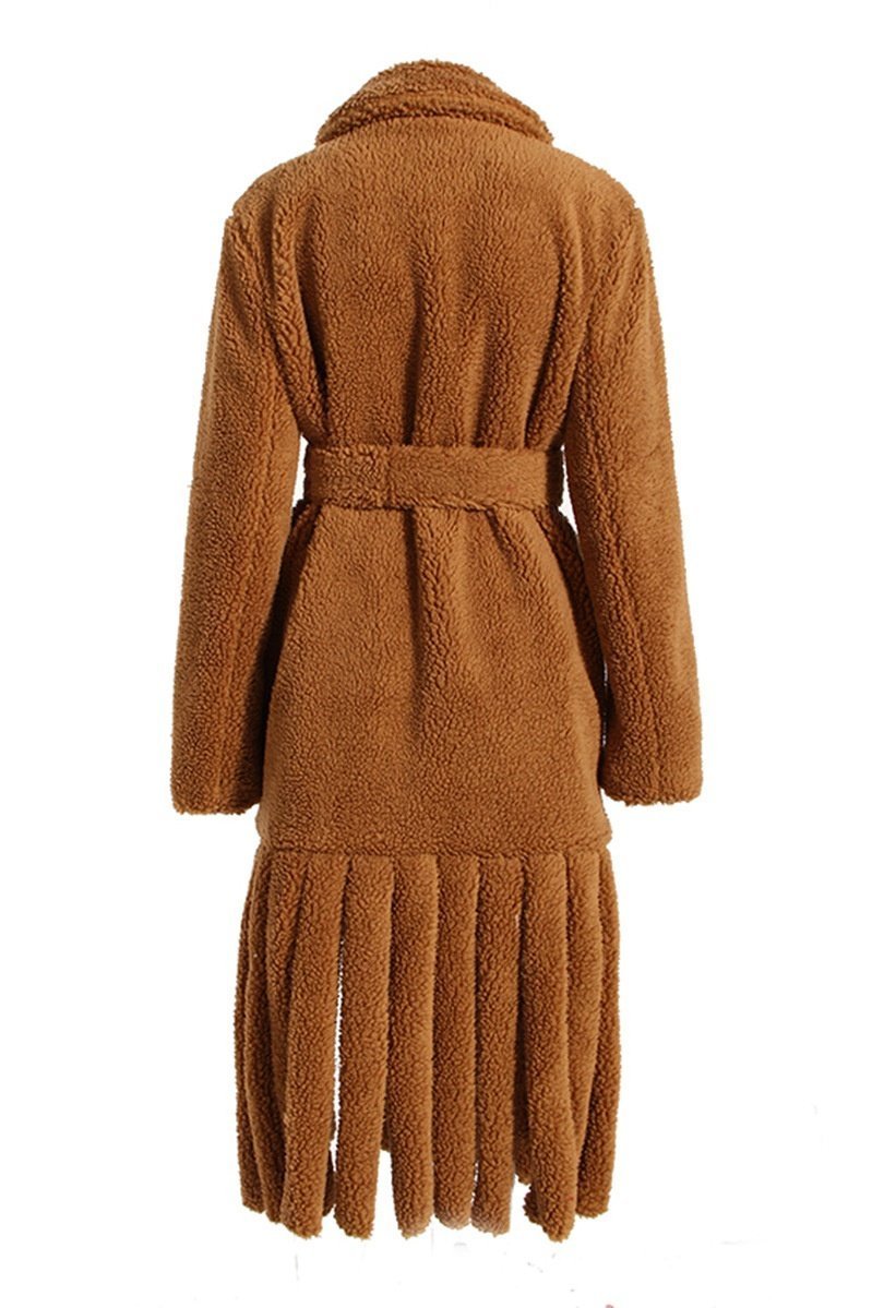 - Collar Featuring, Long Sleeve, Belted, Tassel Hem Detail.
