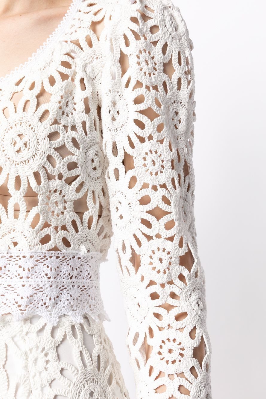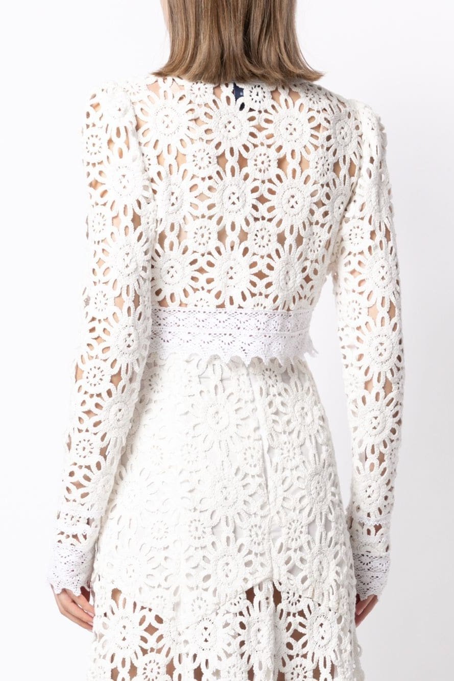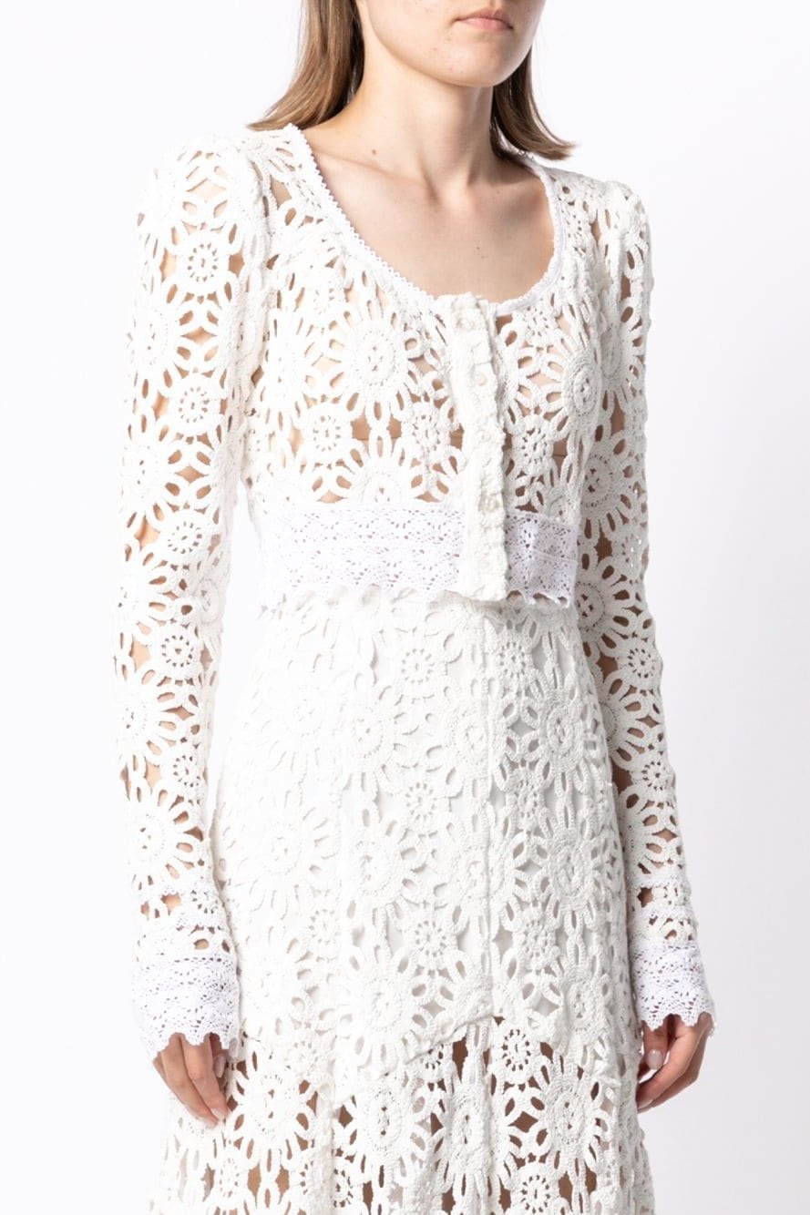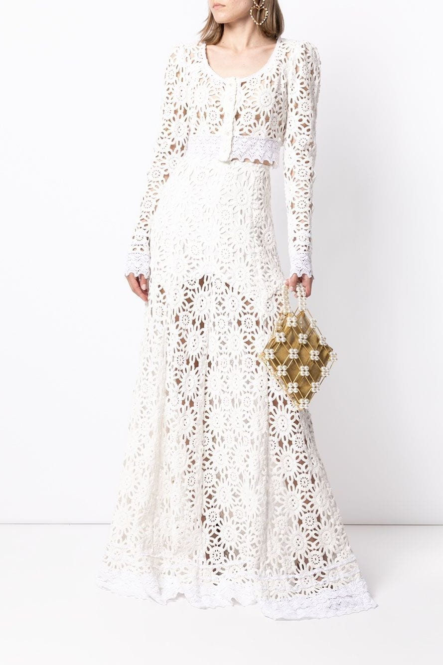 - Hollow Embroidered Lace, Lace Trimmed, Round Neckline, Button-up, Floor Length Skirt.
