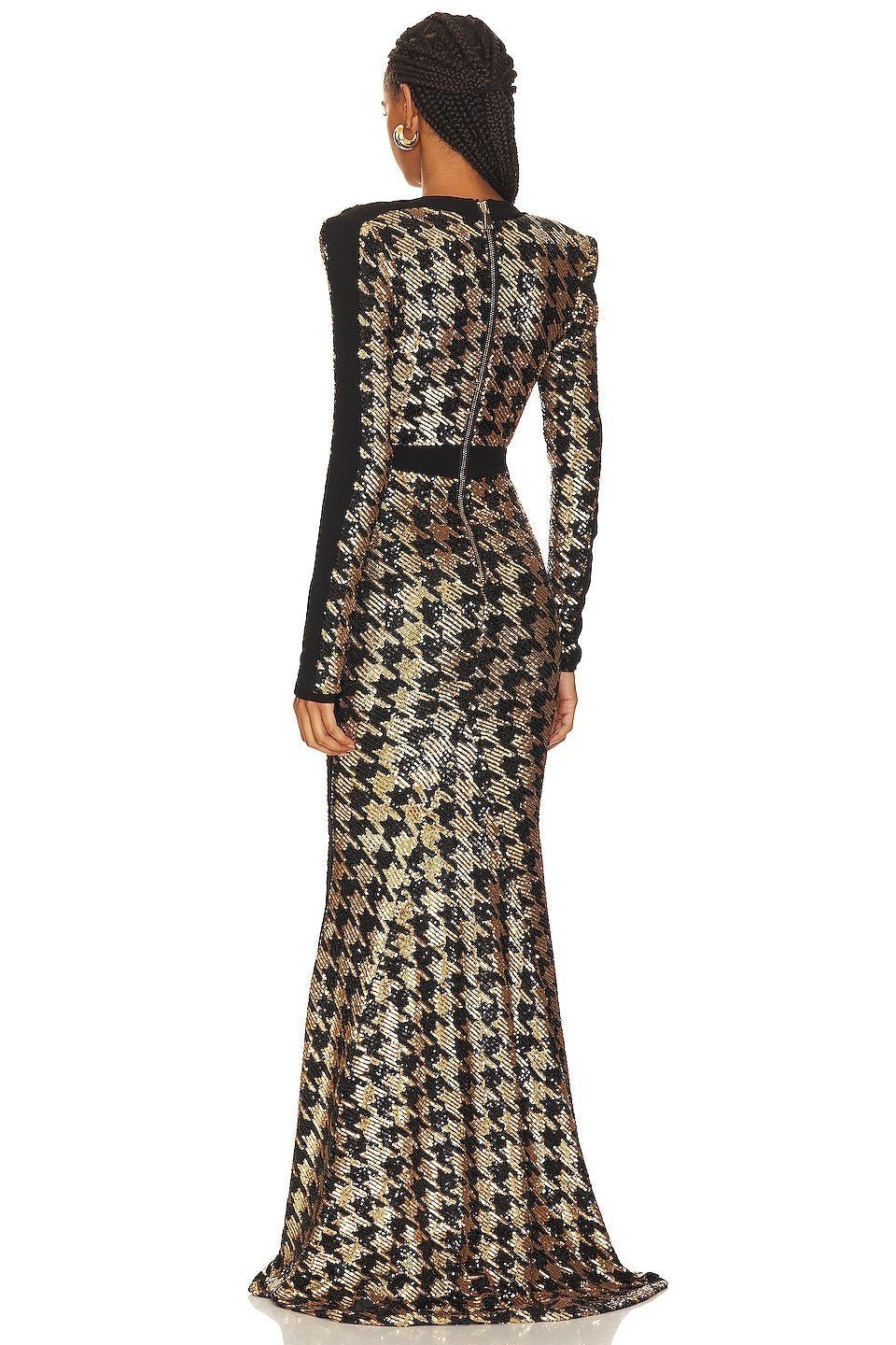 - Double lined, Deep V-neck, Padded Shoulders, Quilted Detail, Maxi Length.